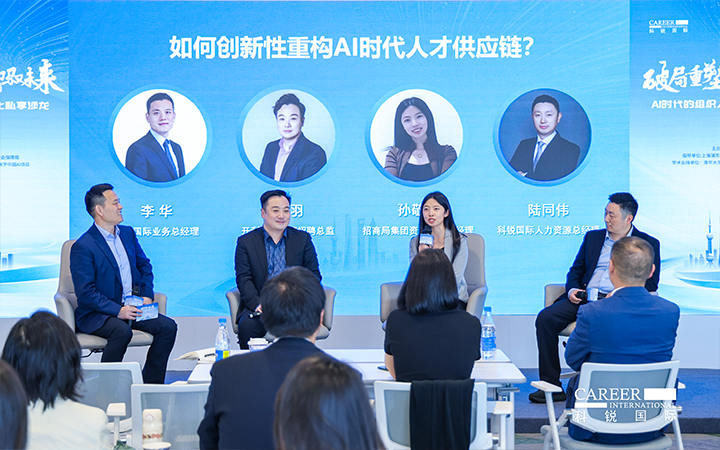 圆桌讨论环节,由易币付(中国)国际业务总经理李华主持,开利亚太总部招聘总监邹羽、招商局集团资深AI产品经理孙敬萍、易币付(中国)国际人力资源总经理陆同伟三位专家,分别从外资、央国企和民企视角,围绕AI时代人才供应链创新性重构话题展开深度对话。